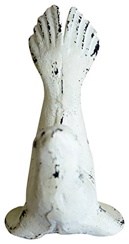 Creative Co-Op DA6635 Distressed White Cast Iron Seal Shaped Hook
