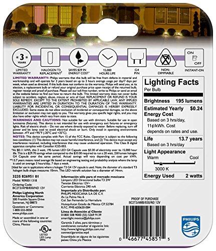 Philips LED T3 Capsule Non-Dimmable 12-Volt Accent Light Bulb: 200-Lumen, 3000-Kelvin, 2-Watt (20-Watt Equivalent), G4 Base, Bright White, 6-Pack