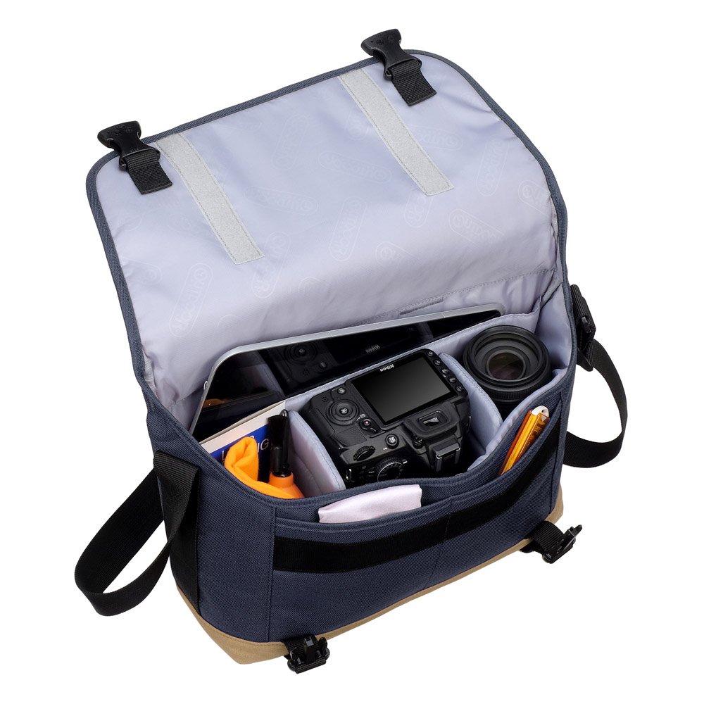 A classic messenger bag type camera bag that allows you to quickly retrieve equipment.