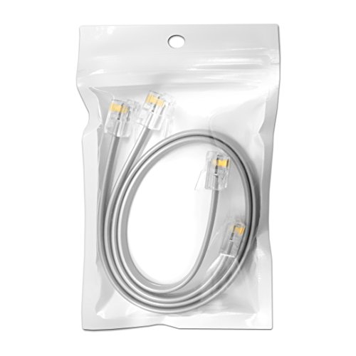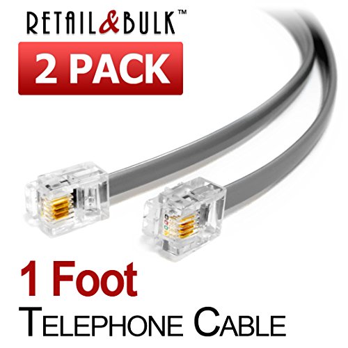 (2 Pack) 1 Foot Grey Telephone Cord, 6P4C RJ11 Plugs, 4 Conductor Wire Phone Line Extension Cable (12 inches, Silver/Gray)