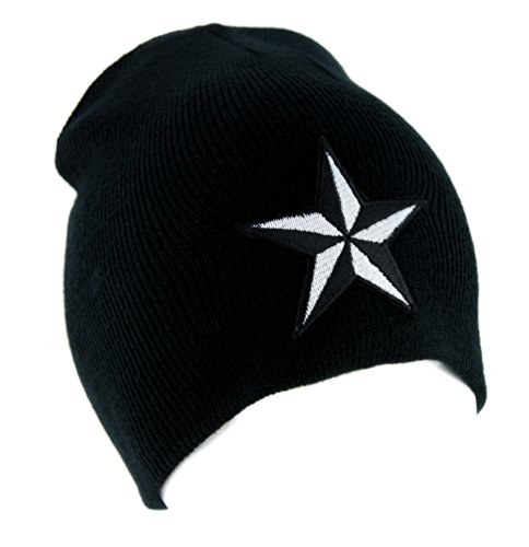 White Nautical Star Beanie Alternative Clothing Knit Cap Rockabilly Tattoo Symbol