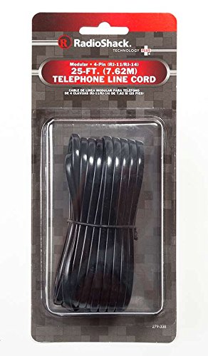 25' FT Feet BLACK 4-Conductor PHONE TELEPHONE EXTENSION CORD CABLE LINE WIRE WITH STANDARD RJ-11/RJ-14 PLUGS RadioShack