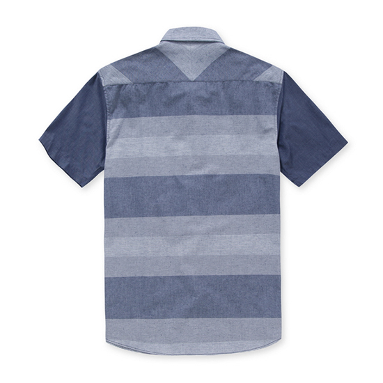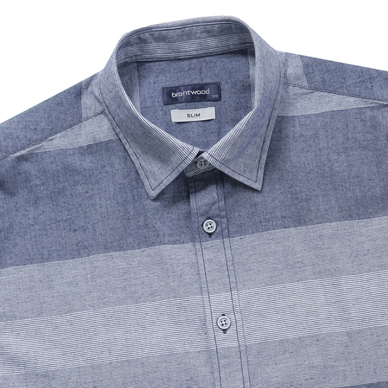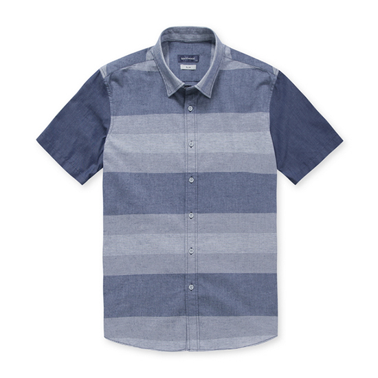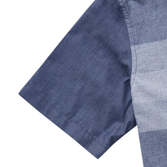 - 몸판의 톤온톤 다양 조직을 블럭 믹스한 남성 셔츠.