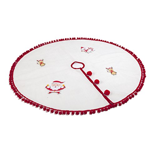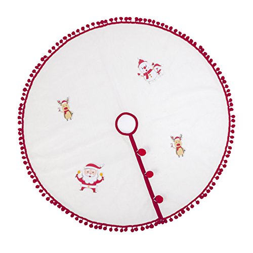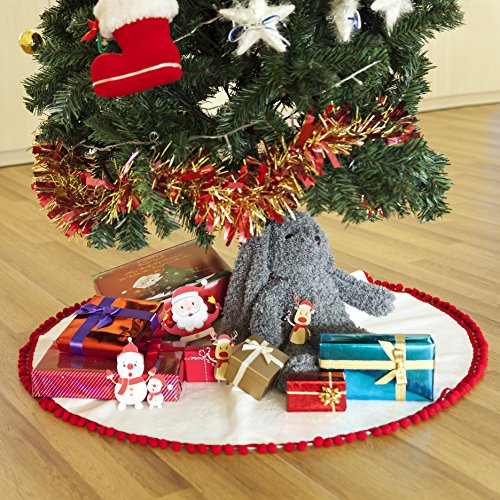 Hffls Christmas Tree Skirt 36 Inch Snow White Short velvet with Christmas Red Pompom Tree Skirt Christmas Decorations Indoor Outdoor