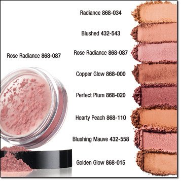 -. Feature : Contains pure mineral pigments and enriched with vitamins. / Free of talc, oil and fragrance. / Great for all skin types, even sensitive. / Infused with our mineral glow pearls. / Avon's mineral blush illuminates cheeks and helps to bring out skin's true vibrance. Featherlight airbrushed finish for a healthy radiance.