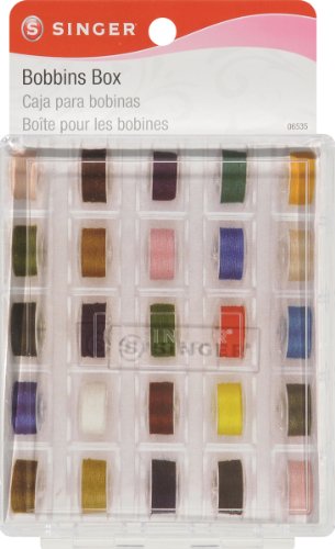 -. Binding : Misc. -. Brand : Singer -. Color : See-Through -. EAN : 0075691065355 -. Feature : The singer bobbin box is great for storing bobbins so they don't get lost or damaged / This convenient organizer holds 25 separate bobbins not included / The clear through plastic hinged box allows you to easily select and retrieve bobbins as needed. -. Label : Dyno Merchandise -. Manufacturer : Dyno Merchandise -. Model : 06535 -. MPN : 6535 -. NumberOfItems : 1 -. PackageQuantity : 1 -. PartNumber : 6535 -. ProductGroup : Art and Craft Supply -. ProductTypeName : HOME -. Publisher : Dyno Merchandise -. SKU : 080194 -. Studio : Dyno Merchandise -. Title : Singer Bobbin Box -. UPC : 075691065355