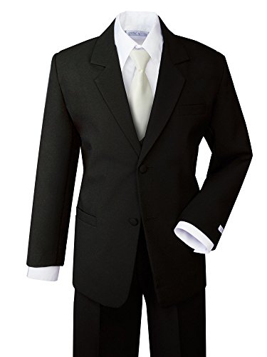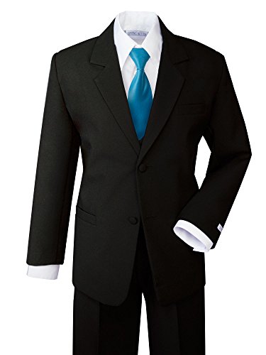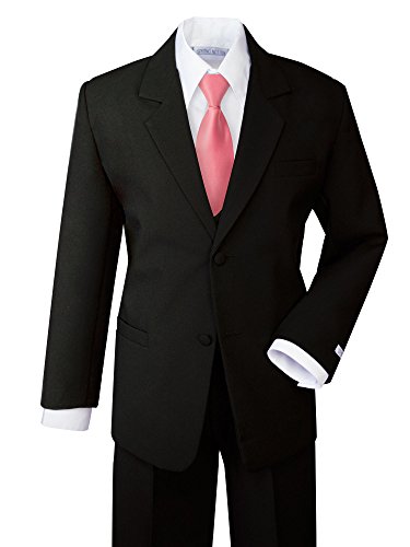 This classic fit dress suit set is styled with a more relax fit than our Modern Fit Dress Suit ( B017WNXY0A , B017WNY0KS ). This complete set includes jacket, vest, dress pants, shirt and tie. Some styles comes with a satin zipper tie in addition to the basic black tie. Set is 100% Polyester, except for dress shirt, which is 65% polyester and 35% cotton. For complete tie color selections, please search for Spring Notion Boys' Formal Dress Suit with Satin Tie, or B01L3NF606.Feature