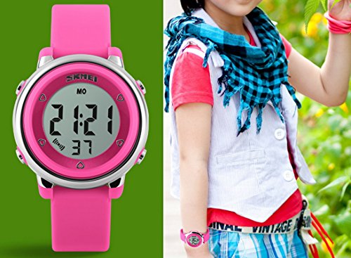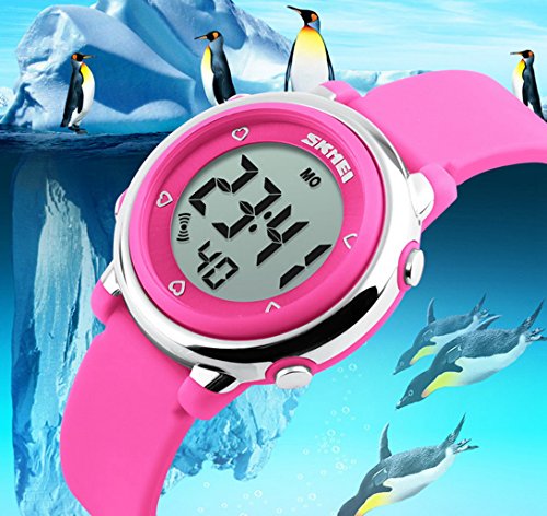 SKMEI 키즈 손목시계 아이 키즈 손목시계 스포츠용 알람 스톱워치 방수 디지털 7 채LED날짜 요일 사내 아이 소녀 귀엽 기프트 여름 핑크