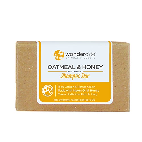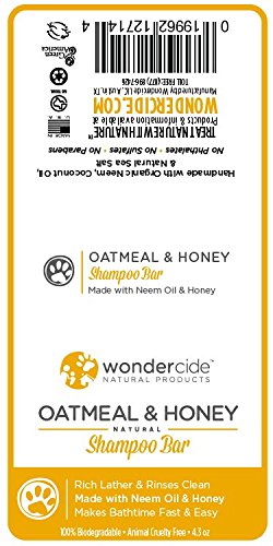 -. Feature : WHY BARS ARE BETTER: Our bars let you bathe faster (much faster!), have an amazing lather, and rinse clean, leaving a refreshing natural scent on soothed skin. Instead of wrangling a wet, wiggling dog (or three!), hose or faucet, AND a bottle of soap, simply hold the leash in one hand, cup the soap in your other and start massaging your dog. The calming action of rubbing the bar soothes your dog and creates an amazingly rich lather at the same time. Our customers swear by these bars! They tell us they will never go back to liquid. Even better: our bars are made from high-quality organic ingredients that are PERFECT for people, too! Never knock over a bottle of soap again - once you try a bar, you won't go back! / OUR ORGANIC INGREDIENTS: The Oatmeal & Honey Shampoo Bar contains organic cold pressed neem oil, organic neem leaf extract, fresh organic aloe vera gel & organic honey. Honey, a natural humectant, attracts & retains moisture in the skin. It is also an anti-irritant, making it suitable for sensitive-skin, babies & seniors. Aloe vera & honey used as part of a skin treatment regimen keeps the skin healthy & glowing with gentle cleaning, conditioning, & moisture retention. INGREDIENTS: Coconut oil, palm oil, shea butter, castor oil, neem oil, neem leaf extract, Aloe vera, vitamin E, honey, ground oats. Treat nature WITH nature! / THE POWER OF NEEM: Neem oil is naturally antibacterial and antifungal, which helps to address the real issues surrounding itching skin. Don't just cover it up, chose real relief for you and your dogs. The most widely recognized uses of neem are based on its merits as a general antiseptic. Neem has been used for hundreds of years as a medicinal herb to treat dry skin conditions, itching skin, skin diseases, sores, infected burns, and insect bites. Neem has even been used for boils, ulcers, eczema, skin diseases and ringworm. Does your current bath soap have neem? This bar does! / DIRECTIONS: It's much easier to use a natural shampoo bar than a liquid shampoo & it lasts much longer. For a relaxing experience for your dog or cat, we recommend that you approach them in a calm, yet assertive manner at bath time. Simply wet the animal, hold the bar in your hand, rub it on their belly, neck & feet. Lather the coat & rinse. For greater repelling effects & to comfort hot spots, insect bites, etc., lather the coat & massage for a few minutes to relax them, then rinse. / ABOUT US: Wondercide develops innovative natural products that replace chemical pesticides and other toxins used in everyday life. Our line of natural & organic pest control replaces chemical pesticides used in flea & tick control, home pest control, personal insect repellent and more. We're protecting your world, naturally. Our full line of natural products protect and care for families, their pets, and the places they live, learn, work and play. We take a holistic approach to consumer product development by using natural, locally-sourced, sustainable ingredients and innovative, low-impact manufacturing processes.