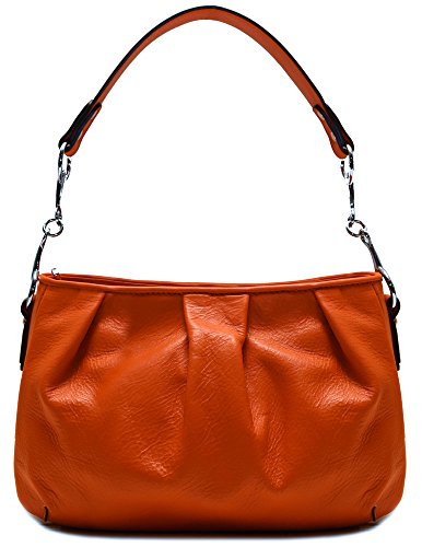 -. Title : Floto Firenze Hobo Shoulder Handbag in Soft Orange Calfskin Leather
