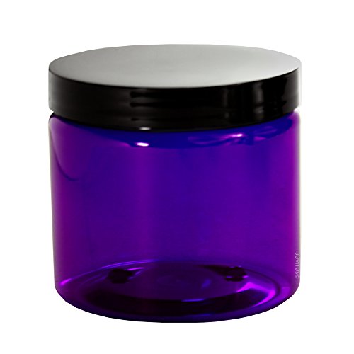 Purple 16 oz PET Plastic (BPA Free) Large Refillable Jar with Smooth Black Lids- (6 pack) + Labels