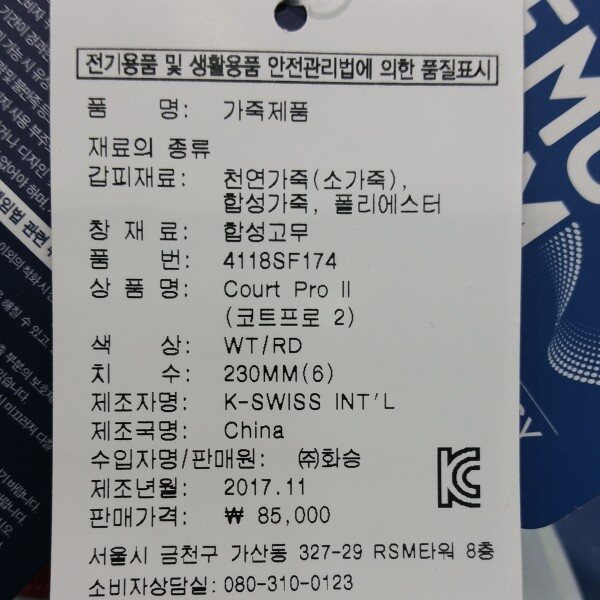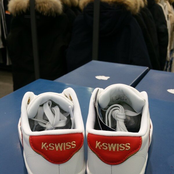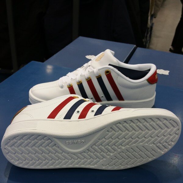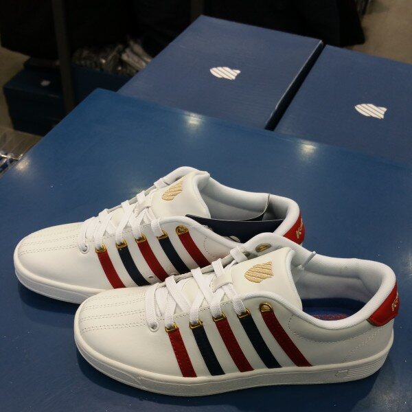 오리지날 스타일의오선을 통해 K.SWISS브랜드 헤리티지를 유지하는 깔끔한 디자인의 상품으로 소가죽을 활용하여 내구성을 강화함.