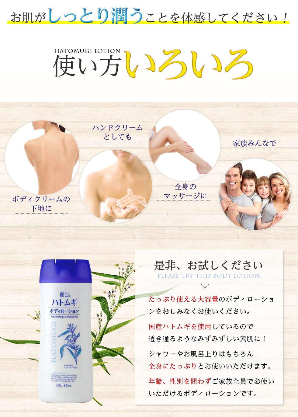 Please take an appropriate amount and hand it so as to gently massage the whole body.