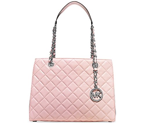-. Binding : Apparel -. Brand : Michael Kors -. ClothingSize : Large -. Color : Blossom/Silver -. Department : womens -. EAN : 0889154340251 -. Feature : 12" W x 9" H x 5" D / Interior features center zip divider, 1 zip pocket, 3 open pockets, 1 cell phone pocket and key fob / Exterior features gold-tone hardware / Magnetic snap closure / Double handles with 9" drop -. PackageQuantity : 1 -. ProductGroup : Shoes -. ProductTypeName : SHOES -. Size : Large -. Title : Michael Kors Susannah Medium Tote BLOSSOM/SILVER -. UPC : 889154340251
