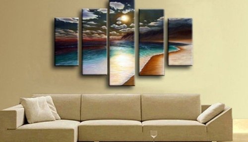 - Title : 100% Hand-painted Wood Framed on the Back Artwork the Yellow Beach High Q. Wall Decor Landscape Oil Painting on Canvas 5pcs/set Mixorde