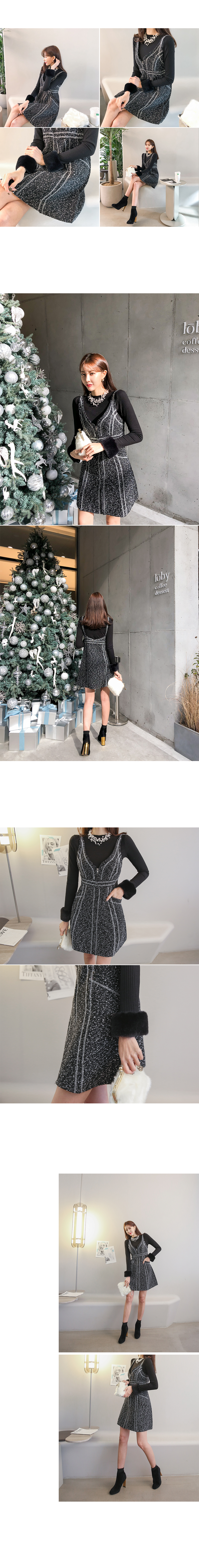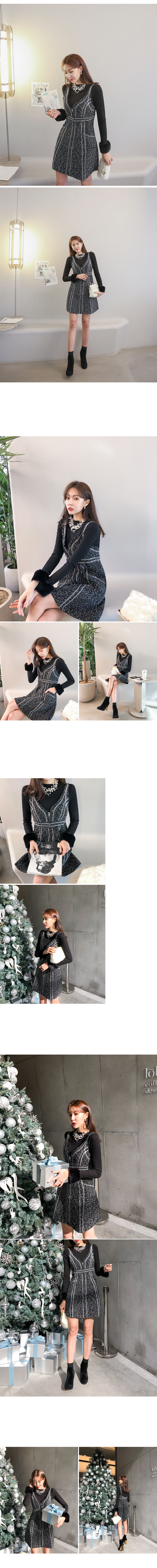 '파티룩으로 제격! 퍼 골지탑과 뷔스티에원피스 SET'