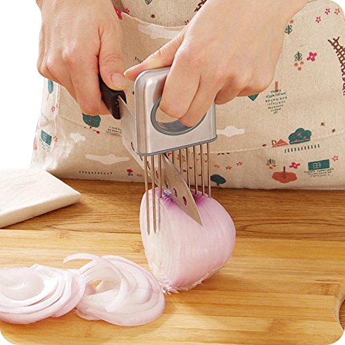 OUMOSI Onion Holder Vegetable Potato Cutter Slicer Gadget Stainless Steel Fork Slicing Helper Kitchen Tool Aid Gadget Cutting Chopper