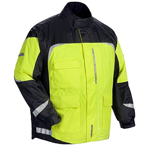 Studio : Tourmaster Publisher : Tourmaster Binding : Misc. Product Description Waterproof and breathable Rip Stop nylon shell with sealed seamsFeatures an Aqua-Barrier under-the-helmet hoodSelf-Contained storage pouch allows the jacket to stuff into itselfChest map pockets feature waterproof zippers, Tour MasterÆs Scoop Vent System and a mesh backing so they can be opened for ventilationThree large waterproof bellows pocketsWaterproof zippered underarm exhaust vents3M Scotchlite reflective piping and Tour MasterÆs signature reflective triangles help increase visibility at nightSized to be worn over motorcycle riding apparelIncludes a jacket to pant zipper attachment that matches perfectly with the Tour Master Sentinel Rain PantsFull wind flap and Velcro main closure keeps moisture out 0