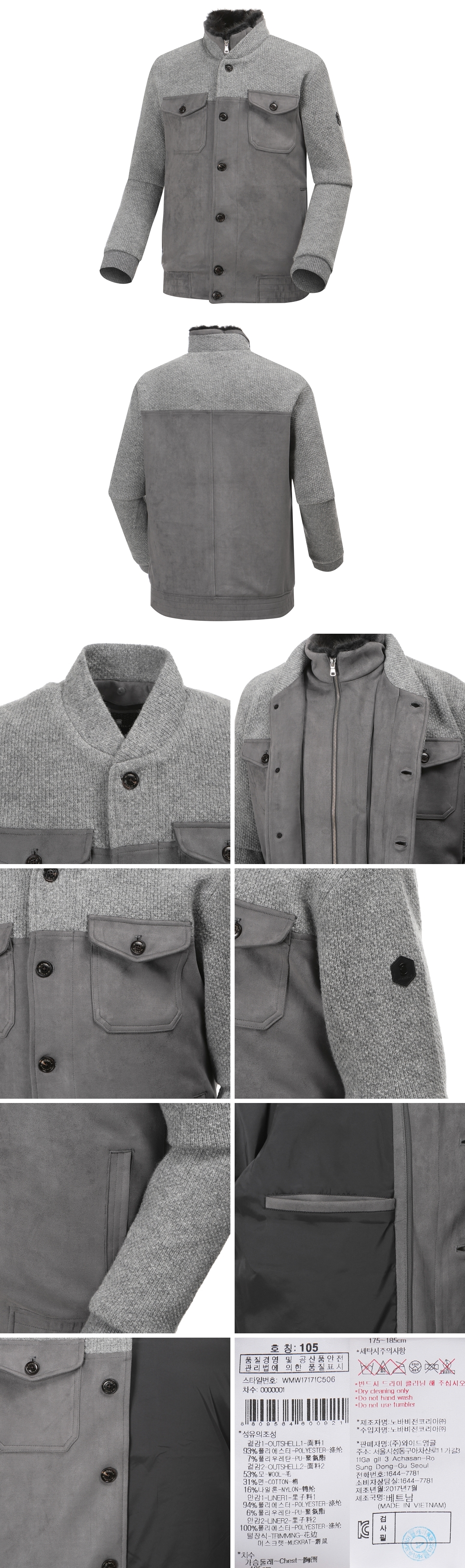 ㆍ스트레치가 가능한 인조 스웨이드 소재에 니트패치를 더한 자켓ㆍ에리 머스크랫 퍼 트리밍으로 보온성을 높이고 고급스러움을 더함ㆍ유니크한 디자인물로 세련되게 연출