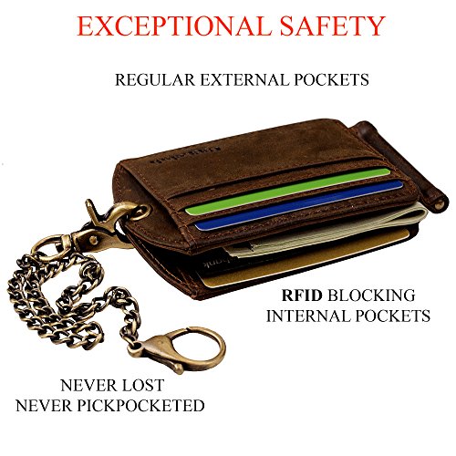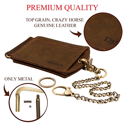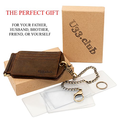 -. Binding : Apparel -. Brand : U33 Club -. Color : Texas Brown -. Department : mens -. EAN : 3068148935384 -. Feature : SLIM MINIMALIST RFID Money Clip Wallet comfortably slips into pocket - Ideal for office travel party, shopping or casual uses / RELIABLE CASH CLIP Wallets allows you to hold upto 16 credit IDs or access cards in built-in pockets of this secure credit card holder / ANTI THEFT Design of our bifold wallet boasts Internal RFID pockets CHAIN help prevent snatching & thef / RFID Blocking men's money clip wallet made from Top Grain Crazy Horse Genuine Leather / 100% RISK-FREE SATISFACTION GUARANTEE on this Wallet -. IsAdultProduct : 0 -. ProductGroup : Apparel -. ProductTypeName : ACCESSORY -. Size : 4.8 x 3.1 x 0.5 inches -. Title : Money Clip RFID Wallets for men Bifold Slim Minimalist Leather wallet with chain