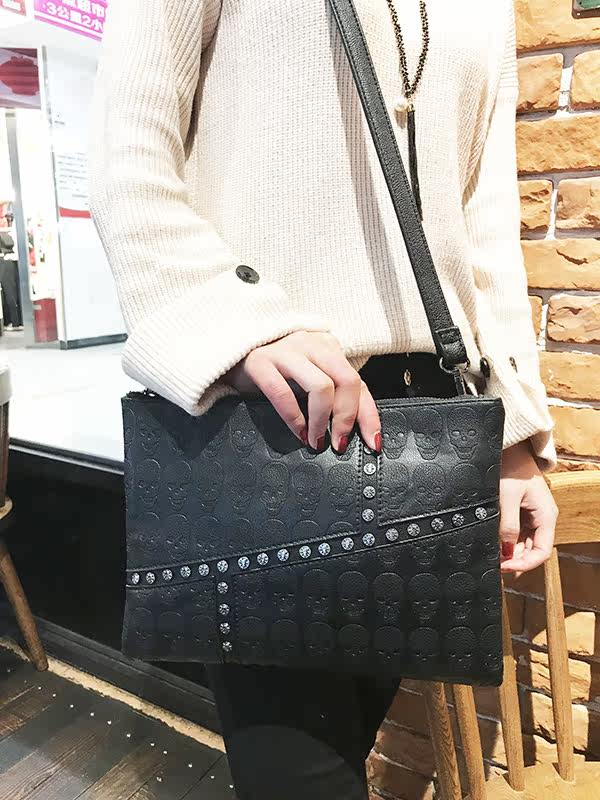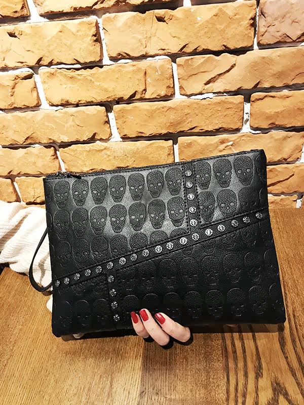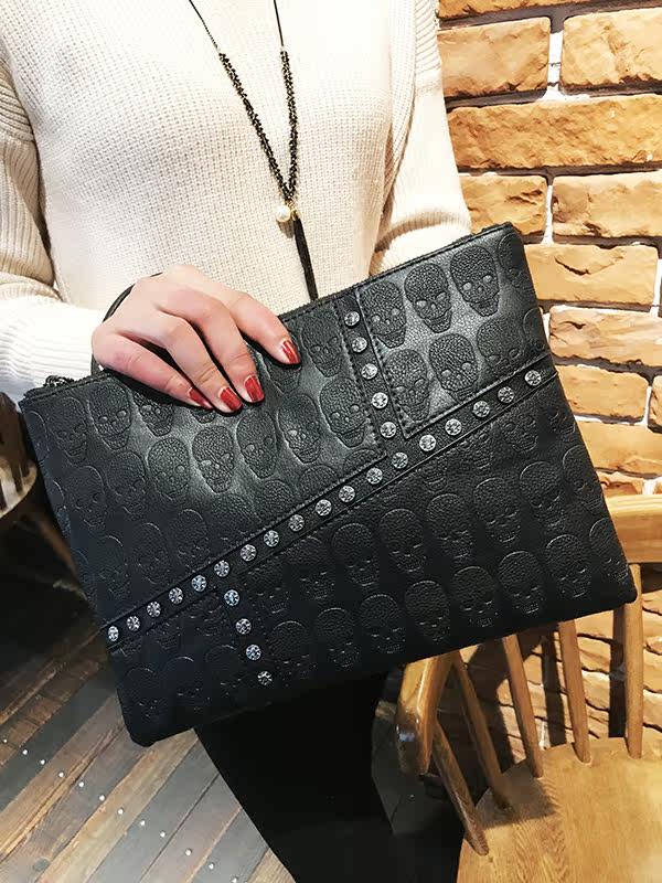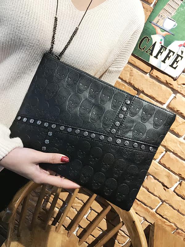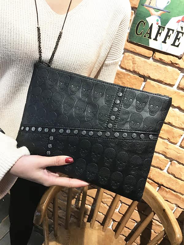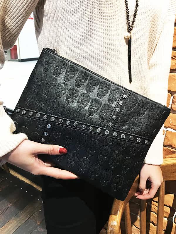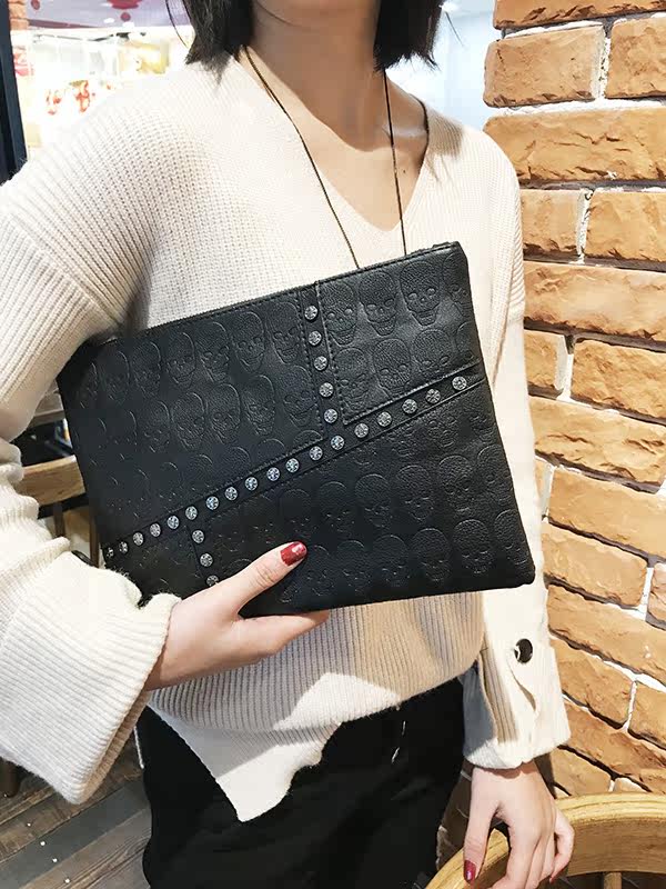 新品手拿包大容量铆钉包个性鬼头信封包潮手抓包多功能斜跨单肩包