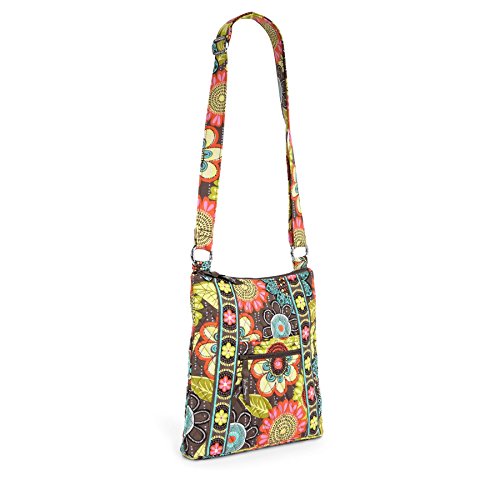 Top zip closure keeps your personal items secure. Single adjustable cross body strap. Exterior front and back zippered pockets. Coordinating printed fabric lining with three organizational slip pockets.Imported.