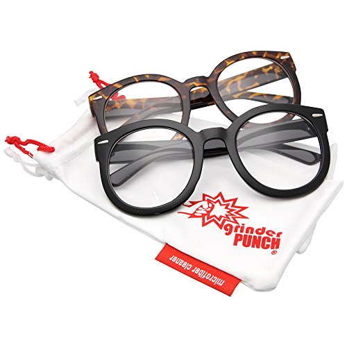 grinderPUNCH Women's Round Fashion Sunglasses with UV400 Protection. Bold, round and oversized horn rimmed sunglasses. Classy fashion and vintage style make these perfect for daily wear. Includes a grinderPUNCH microfiber cleaning pouch.Feature