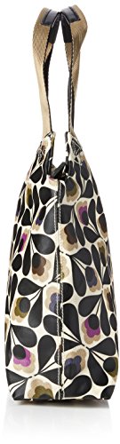 Matte laminated classic zip shoulder bag in the 'sycamore seed' print with leather trims and double sided webbing handles and contrast coloured zip closure. Inside details include sand linear stem jacquard lining, small leather logo card holder pocket small zip pocket, elasticated key chain and mobile pocket. Silver coloured hardware. Handles measure 43.5 cm from top edge of the bag.