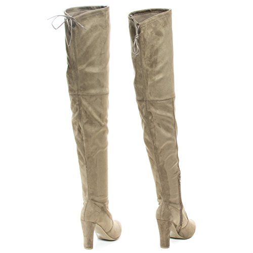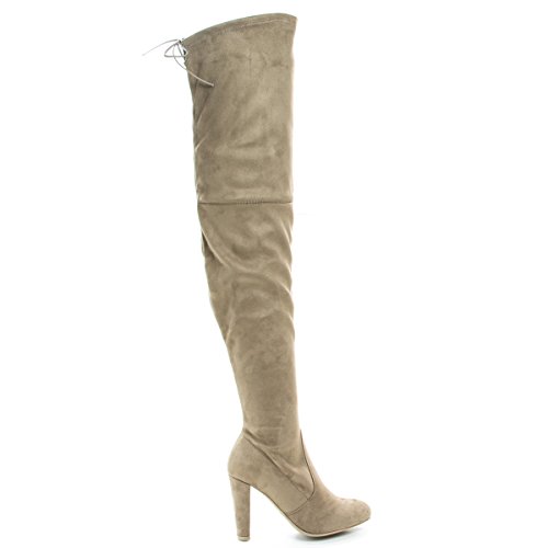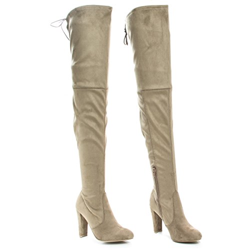 Binding : Apparel Product Description This slouchy western inspired suede dress boots features a 24 inches shaft measured from where the heel begins, a 3.5 inches high block heel, lace up slit back for better fitting on most thighs with a 16 inches circumference opening where the slit begin in the back. You will find a side zipper on the inner side to help you slip into these beauties easier. (Please note that these measurements are based on a size 7). Style fits true to size. Available in Taupe (Gray), Black etc. All man made materials. Why buy expensive brand name shoes when you can get inexpensive alternative, with this style you can afford to have beautiful styles without compromising the quality or the price. By Aquapillar 0