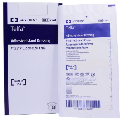 -. Title : Telfa Adhesive Island Wound Dressing 4" x 8" - Box of 25