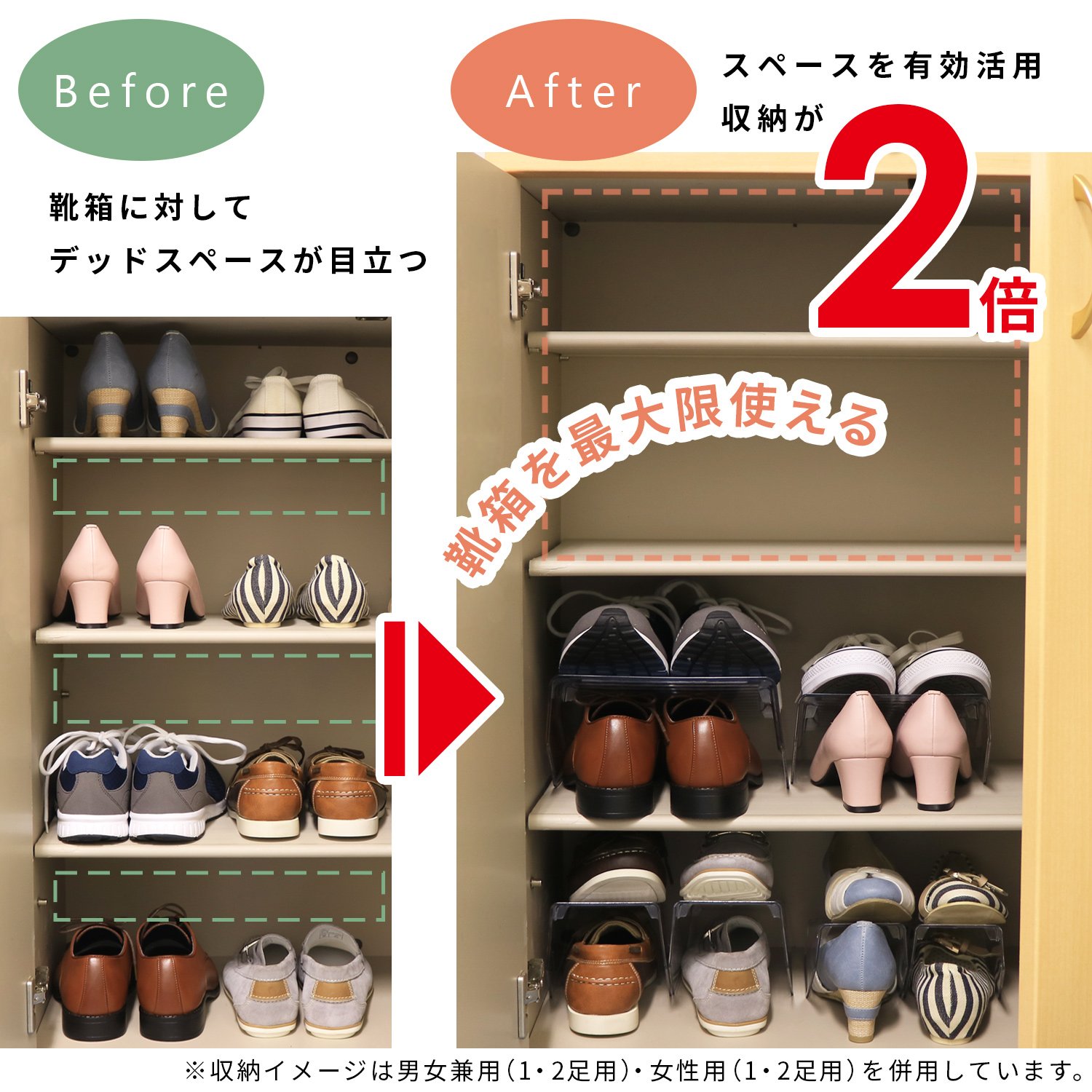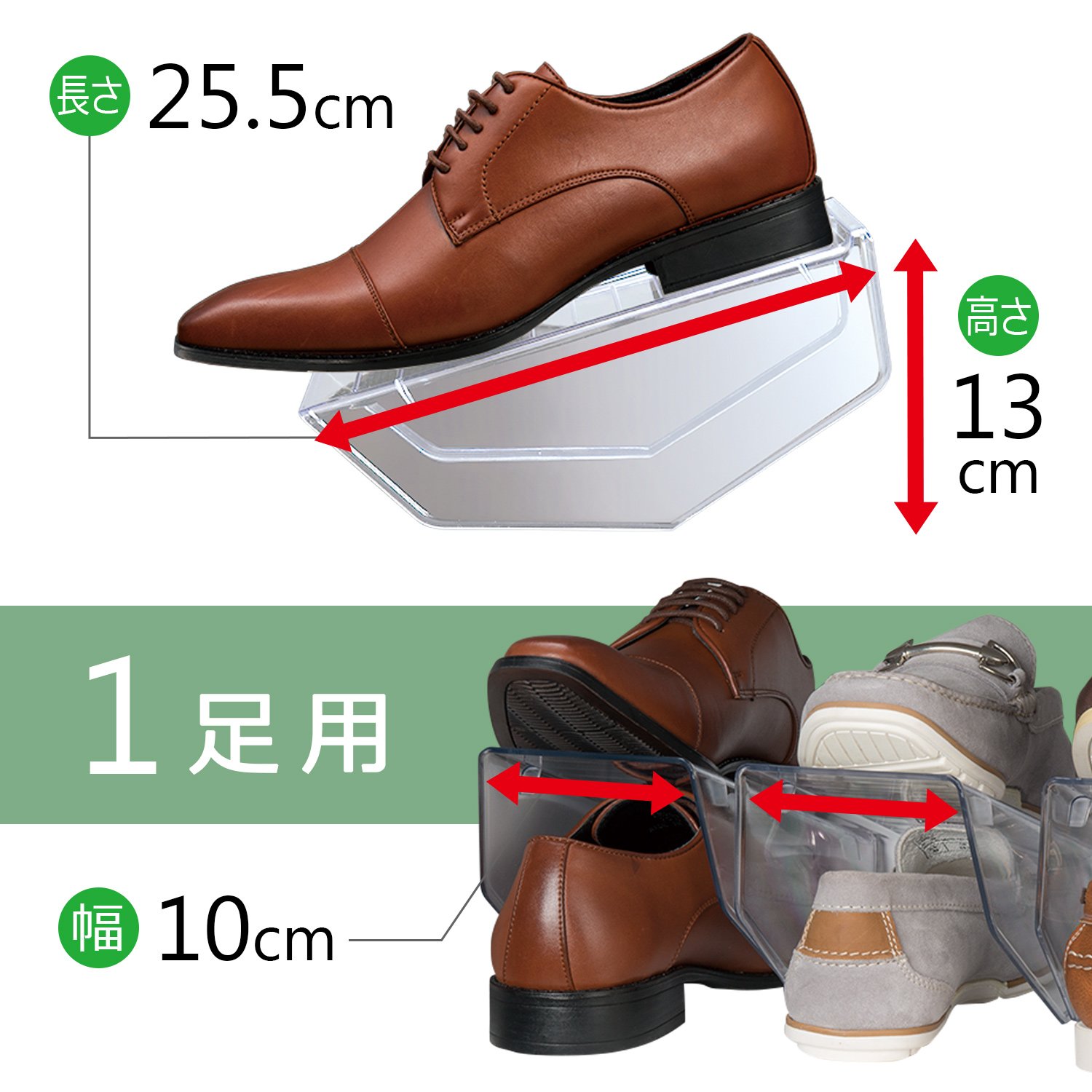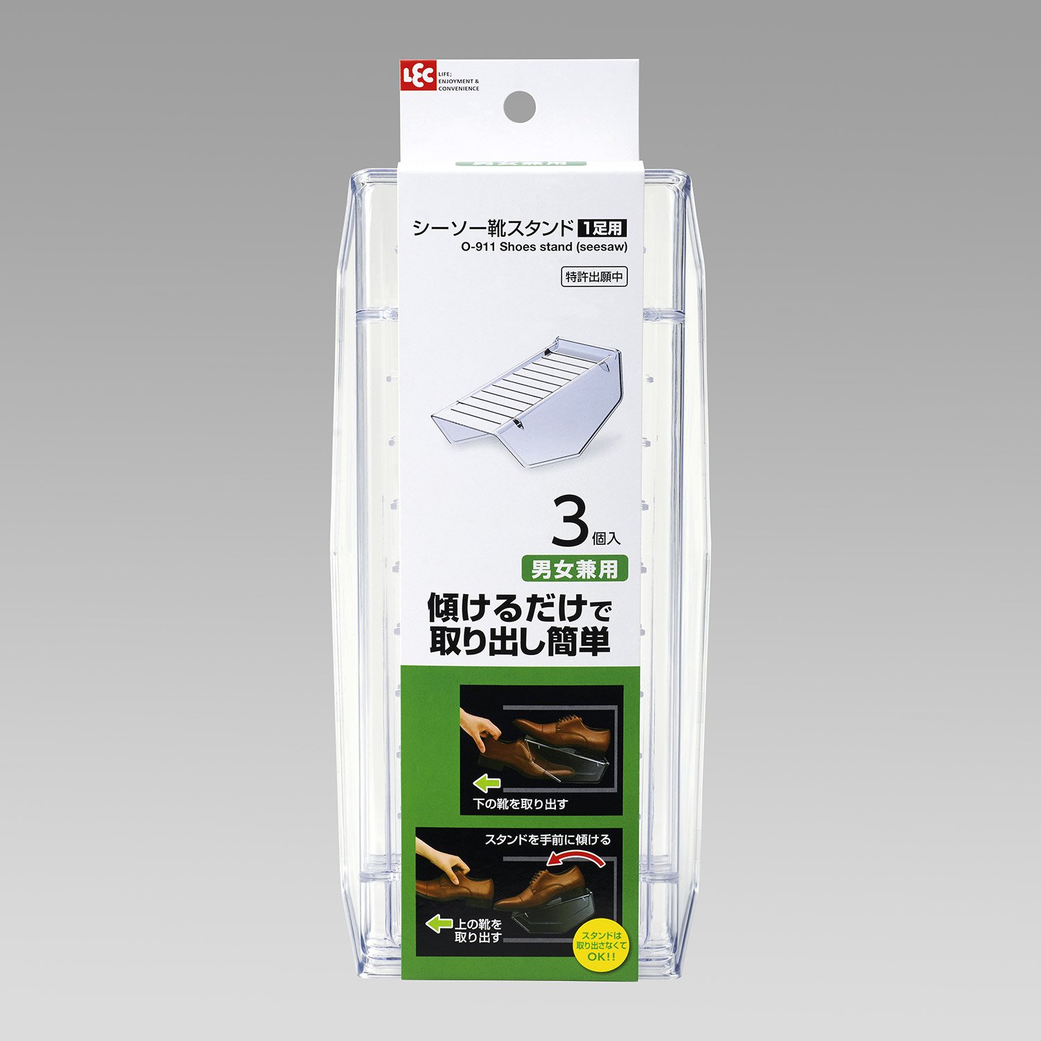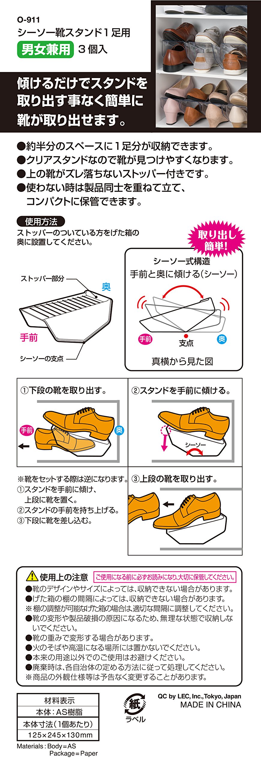 ● Clear type makes it easier to find shoes.