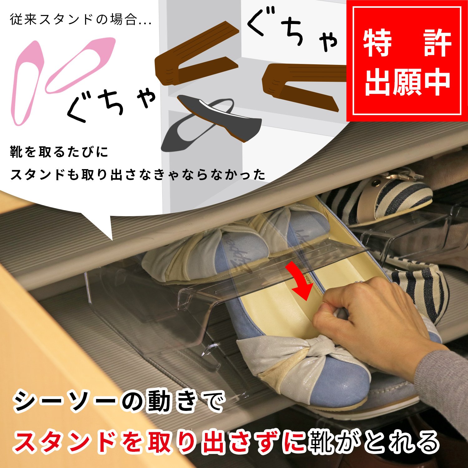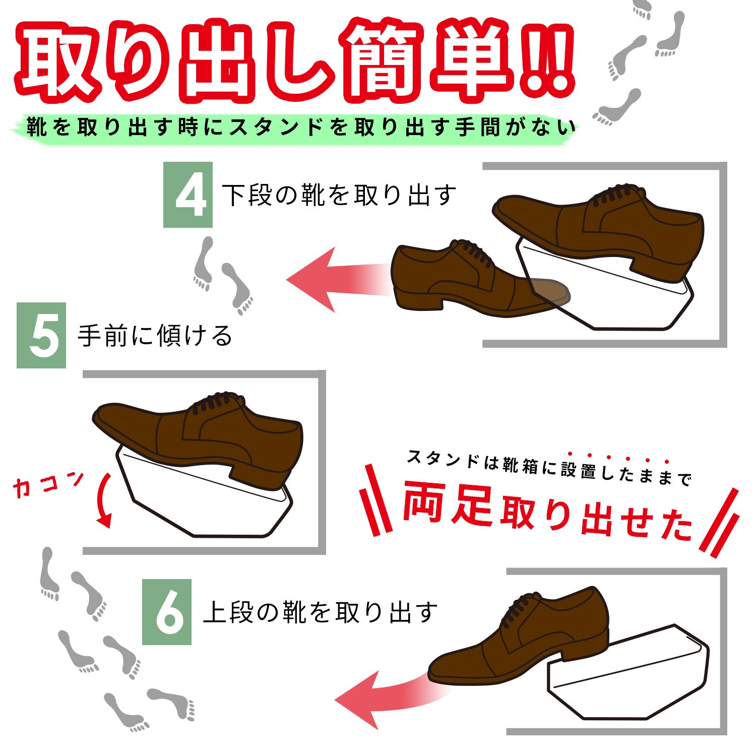 ● Unlike other products, you can easily take out shoes by simply tilting without taking out the stand.