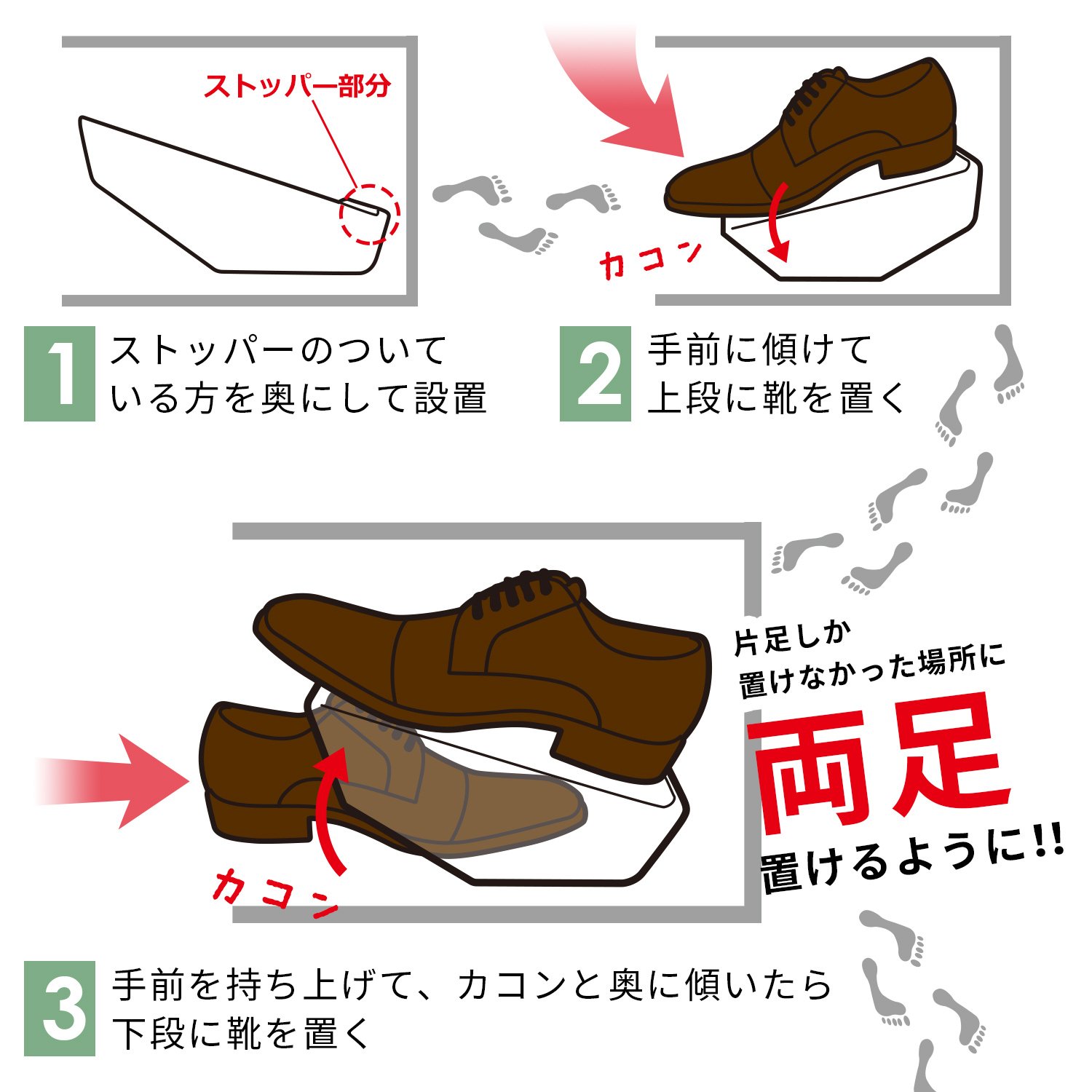 ● About half of the space can accommodate one foot, so you can use it effectively.