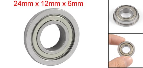 Uxcell a12111600ux0223 24mm x 12mm x 6mm Silver Tone Radial Shielded Deep Groove Flanged Ball Bearing, 0.9" width, 0.8 Metal