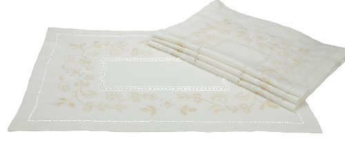 - Hand woven pure cotton table linens with floral vine embroidery and finished with hemstitch!