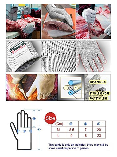 -. Feature : ULTIMATE COMFORTABILITY: ProP.R.Ietary blend of fibers breathe so you can perform tasks comfortably / Perfect for slicing,oyster shucking and cutting for kitchen users,pumpkin/wood carving, carpentry. / Perfect for Kitchen prep, repairs, changing blades, sharpening knives, and more / High polyethene performance- makes it breathable,highly elastic,lightweight and comfortable / CE Level 5 are very durable, comfortable, machine washable and drip dry only!