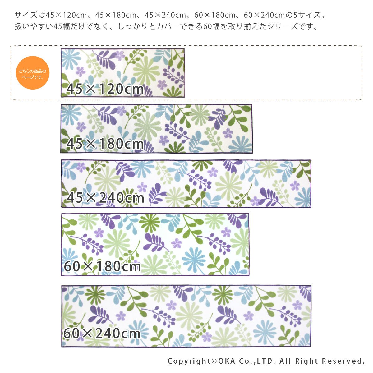 ● Size is 45 × 120 cm, 45 × 180 cm, 45 × 240 cm, 60 × 180 cm, 60 × 240 cm 5 sizes