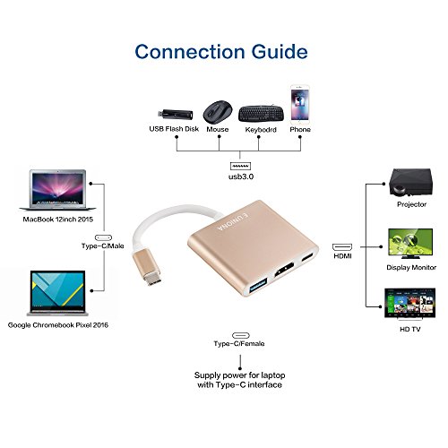 USB 3.1/TYPE C/Thunderbolt 3/USB C To HDMI/USB A 3.0/USB-C Adapter Hub Converter Cable For Apple Macbook Retina Display 12" Laptop 2015, 15" MacBook Pro 2016, Google Chromebook Pixel, New Acer Switch Alpha 12, Dell XPS 13/15,Lenovo Yoga 900,Pixel C,LG G5,LG V20,Lumia 950/950XL,HP Spectre X2 or Other USB C PC/ Android Phone/Tablet(DP ALT). New Update:Support 2016 13"/15" New MacBook Pro with Thunderbolt 3/USB-C Port Now