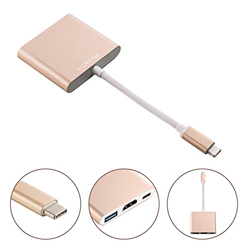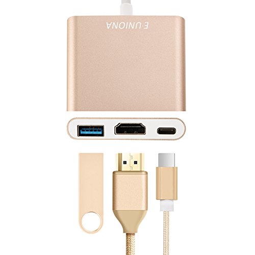 E-Uniona Usb 3.1 Type-C To Hdtv Hdmi/Usb3.0/Type C Convertor Cable Adapter For New Macbook/Chromebook Pixel/Dell Xps13/Yoga 900/Lumia 950Xl/Usb-C Devices To Hdtv/Projector