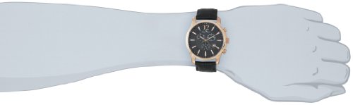 -. Feature : Swiss quartz movement / Sapphitek crystal; rose gold ion-plated stainless steel case; black leather strap with alligator pattern / Chronograph functions with 60 second, 30 minute and day subdials; date function at 4:00 / Black textured dial with rose gold hands, hour markers and Arabic numerals; luminous / Water resistant to 165 feet (50 M): suitable for swimming and showering