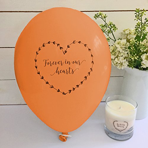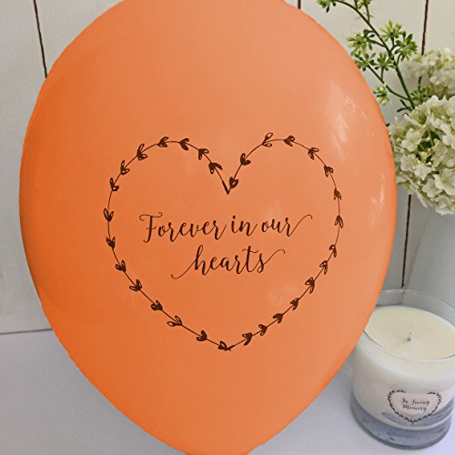 25 Orange 'Forever In Our Hearts' Funeral Remembrance Balloons - 100% Biodegradable - by Angel & Dove