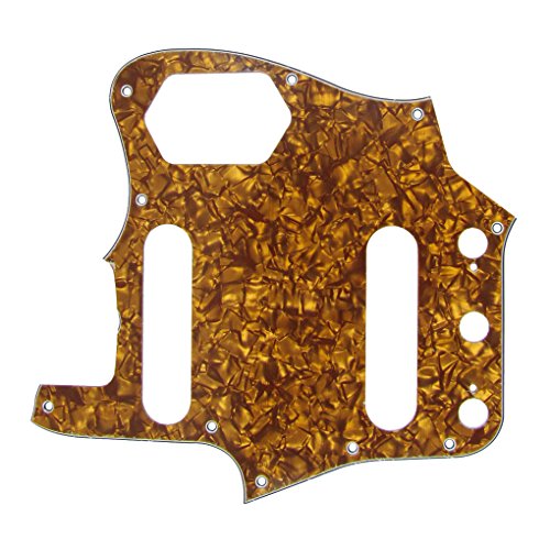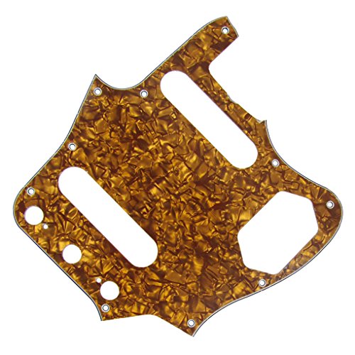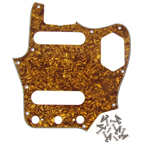 Studio : iknmusic Publisher : iknmusic Product Description For USA Standard Vintage Fender Style Jaguar Guitar.Color: Brown/Golden PearlJaguar Style Guitar pickguard Mounting screws.4Ply 10 Screw holes in the side of the pickguard.Pearl/Celluloid Plate and PVC MaterialAnti-scratch to protect the bass guitar.Package Included:1 Pcs Pickguard 25pcs mounting screws 0