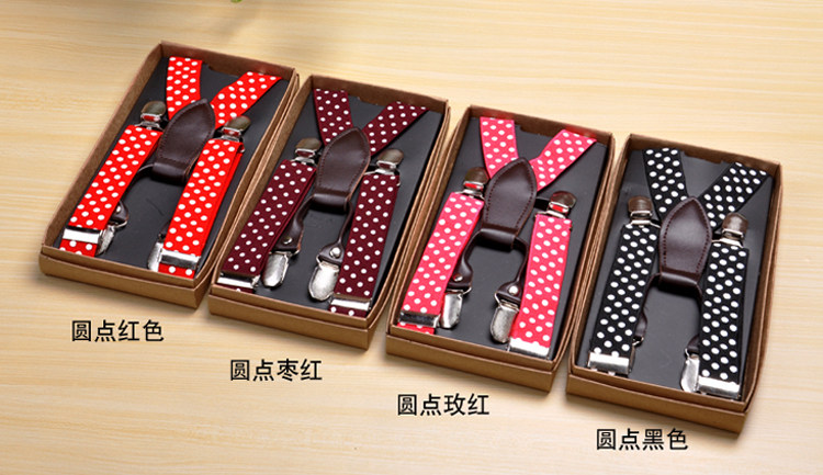 ? ?这是一款新品!做工十分精细、相当可爱的儿童背带,用它装扮您的可爱宝宝,活灵活现,简直帅呆了!免去传统皮带的束缚,多种可爱的造型,深受小宝宝和小朋友的喜爱,宽带的皮筋设计能保护宝宝幼嫩的肩膀不受到伤害,活扣设计可以和您的宝宝一起长大。无论是夹衣服的英伦风,还是要夹裤子都很赞哦!!