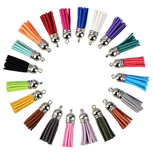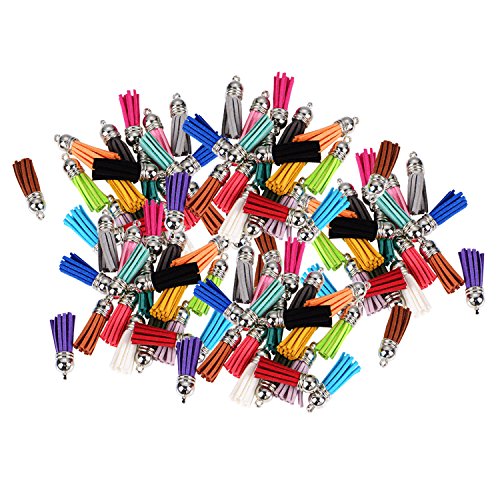 Satinior 100 Pieces 40 mm Leather Tassel Pendants Faux Suede Tassel with Caps for Key Chain Straps DIY Accessories, 20 Colors