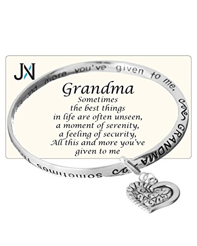 -. Title : Grandma's Love Prayer Twist Engraved Bangle Bracelet with Heart Charm by Jewelry Nexus