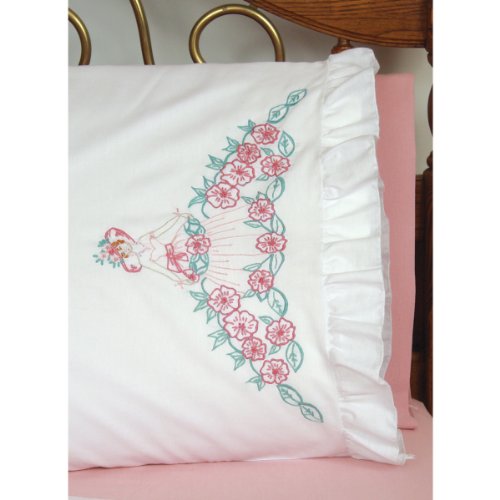 Fairway Stamped Lace Edge Pillowcase, 30 by 20-Inch, Flower Lady, 2-Pack