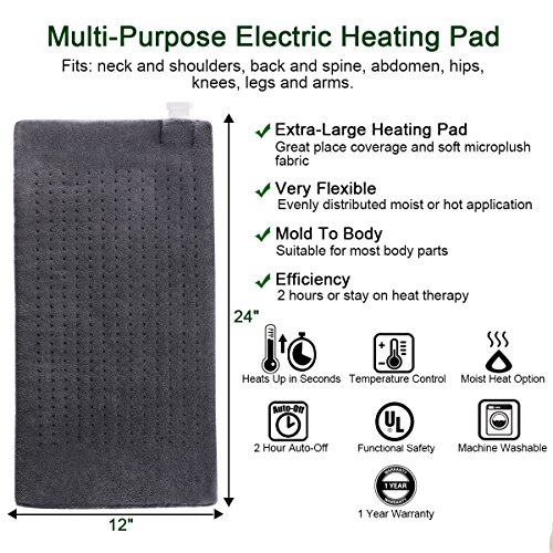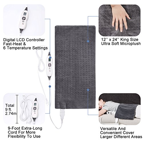 4. Pad Material: Microplush (top); Polyester (bottom). Soft comfortable fabric, fully washable pad 5. 2 hour automatic shut-off for safe use 0