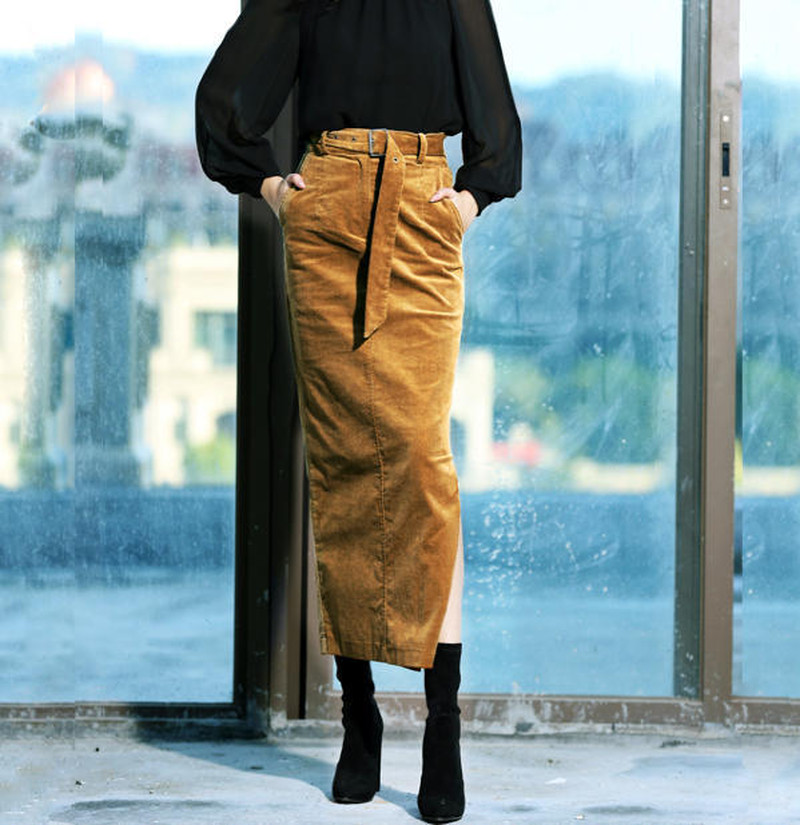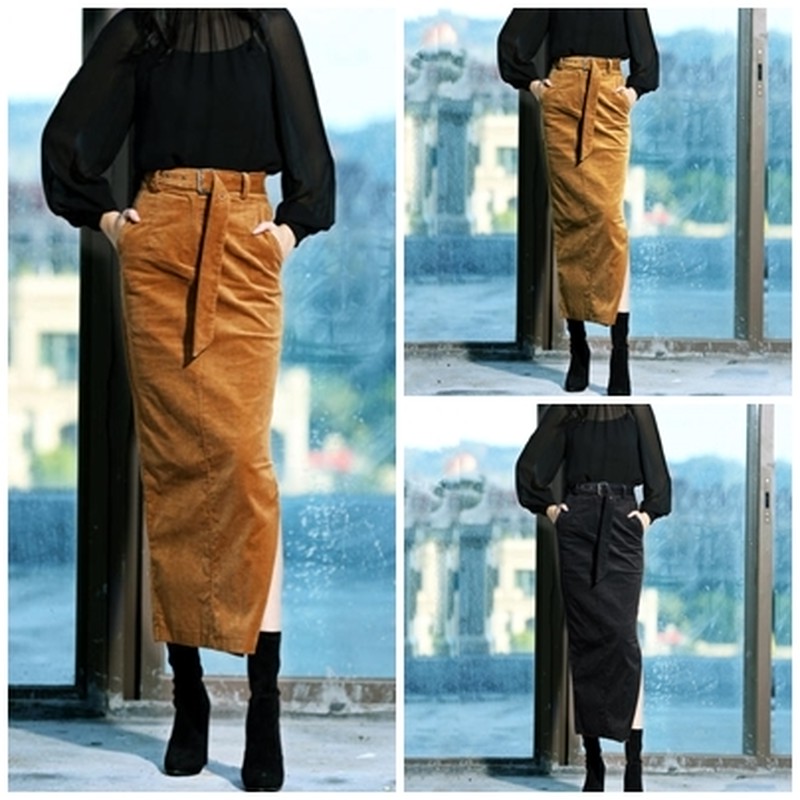 ♢ポイント♢ タイトなラインが女性らしいペンシルスカートです。 秋冬大人気のコーデュロイ生地です♪