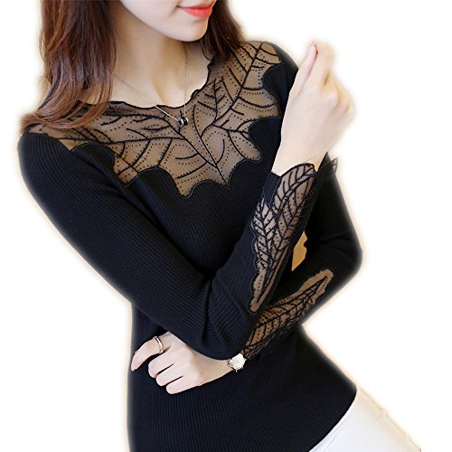 -. Feature : 花柄レースニットトップス。 / 体にフィットする素材で綺麗なボディーラインを演出。 / 首元と手首のレースは大人綺麗なフォーマルデザイン。 / ◆カラーバリエーション◆ ブラック、グレー、レッド / ◆サイズ◆ フリーサイズ