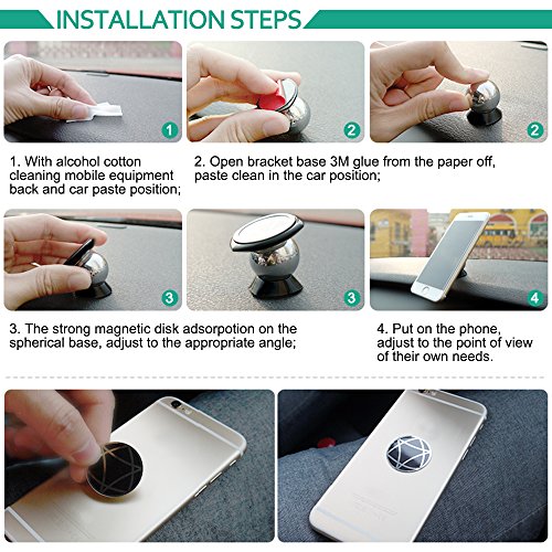 Perfect 360 degree and magnetic, unique round can adjust the position of your mobile phone, so use this magnetic mount on the wheel, so you can clearly see the phone without having to access your mobile device, so you can be safe To reach the destination.